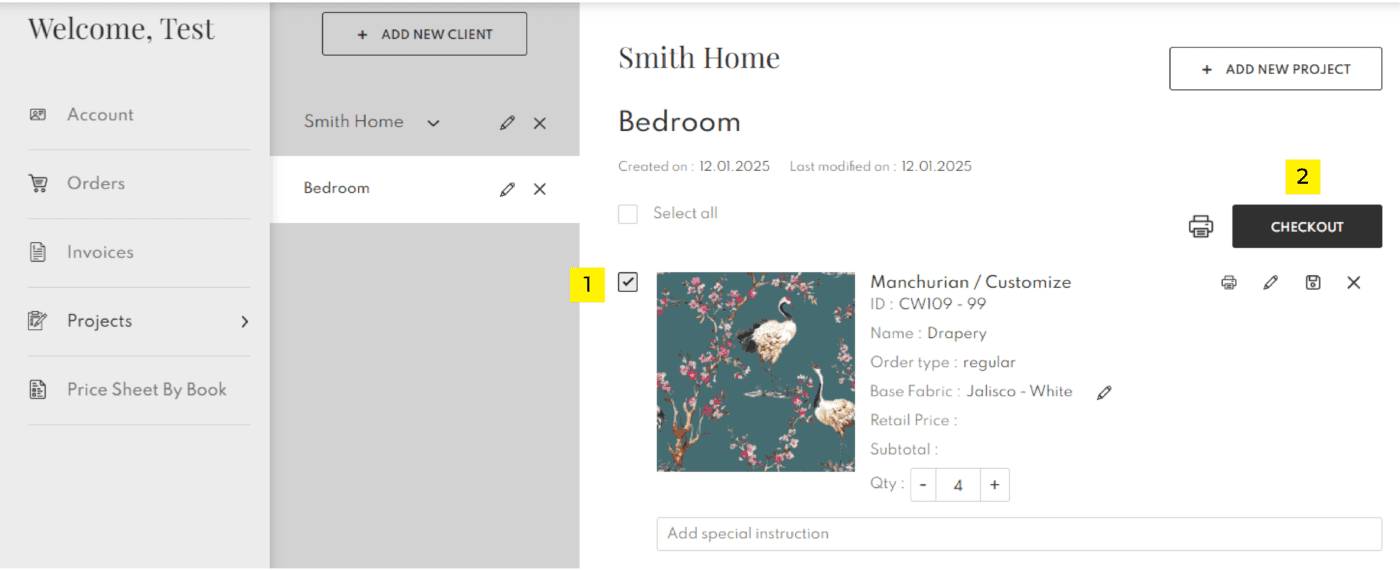 5. Add to Cart and proceed with checkout process or Save to Projects