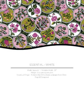 Essential Wallpaper is a non-woven paper substrate that is pre-pasted and strippable. It features a scratch-resistant coating that can be cleaned with a damp towel.